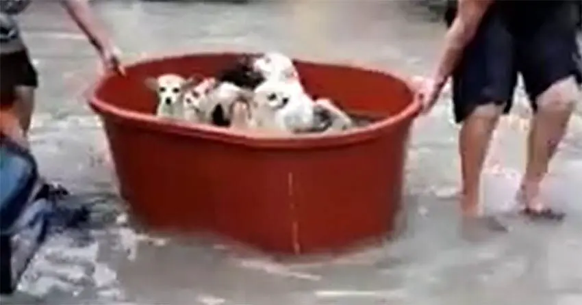 En la inundación lo pierden todo, pero arriesgan sus vidas para salvar a sus cachorros