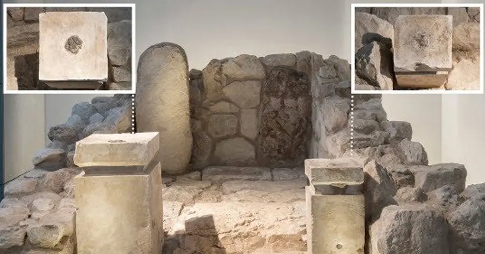 Se encontraron dos altares de piedra caliza (el altar más pequeño mide 40 cm de alto y unos 20 por 20 cm en la parte superior; el más grande mide aproximadamente 50 cm de alto y 30 por 30 cm en la parte superior) en la entrada del 'sancta santorum' del santuario. El estudio ha sido publicado en la revista Tel Aviv Journal of the Institute of Archaeology of Tel Aviv University.
