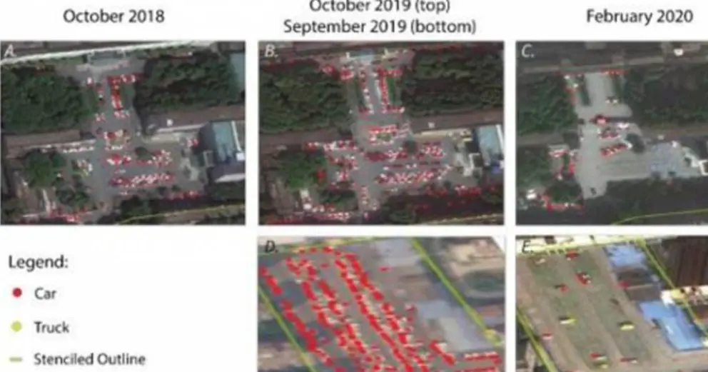 En concreto, los expertos analizaron más de 100 imágenes satélites de Wuhan desde el 9 de enero de 2018 hasta el 30 de abril de 2020, lo que resultó en más de 200 fotografías de aparcamientos y zonas hospitalarias de hospitales de la ciudad china.