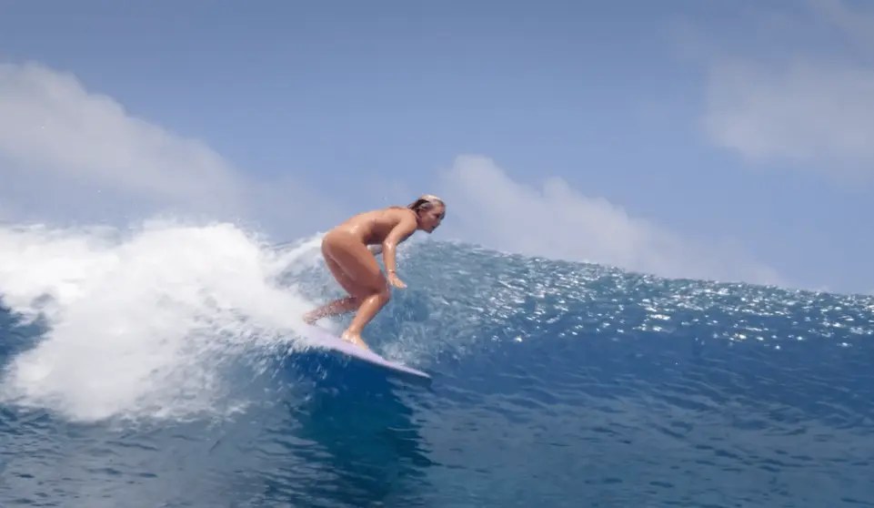 No había esquemas previos para las tomas. No se trataba de seguir un plano secuencia. Todo debía responder a una naturalidad. A una espontaneidad en femenino singular. A un edén que acoge a la mujer anónima. No salvaje pero sí libre de todo corsé. Ella se metió en el agua, como una pieza más del bellísimo entorno, completamente desnuda, y a conjugar la acción de surfear.