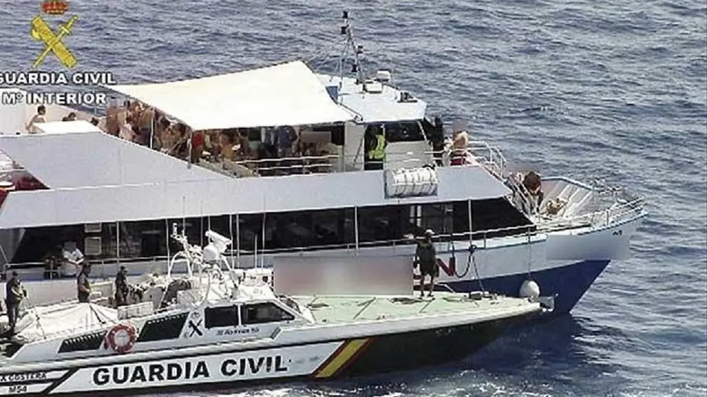Fiesta por todo lo alto sin mascarillas en dos yates. La Guardia Civil ha detectado una fiesta en dos yates con 20 personas en Albufereta, situado en Alicante. El Servicio Marítimo de la Guardia Civil pudo interceptar solo a uno de los yates cuando se acercaba a la costa.