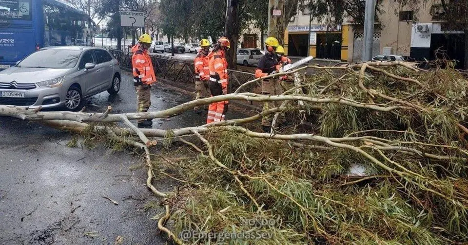 Destaca el caso de un niño herido leve por la caída de un árbol en la céntrica plaza del Cristo de Burgos, toda vez que aunque el menor fue trasladado al hospital Virgen del Rocío, no requirió intervención alguna y ya está en su hogar.