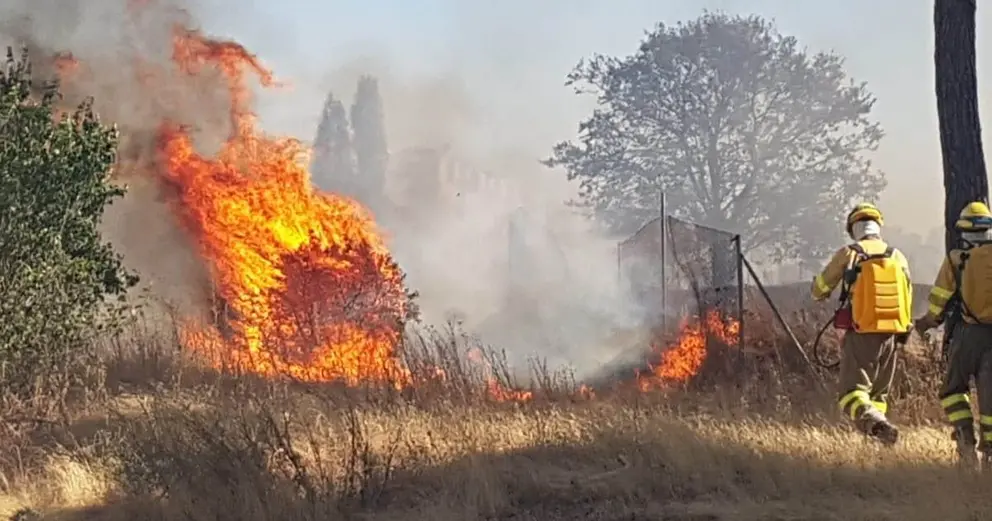 Dos dotaciones de bomberos municipales trabajan desde las 17:40 horas de la tarde del miércoles en un incendio que se ha producido en Pinar de Jalón, Valladolid.
