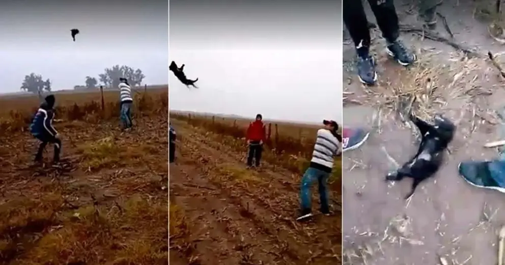 El vídeo y el tuit adjunto, que contiene imágenes que pueden herir sensibilidades, muestra como una persona lanza a un perro al aire y otra le golpea con un palo, como si jugaran a béisbol.