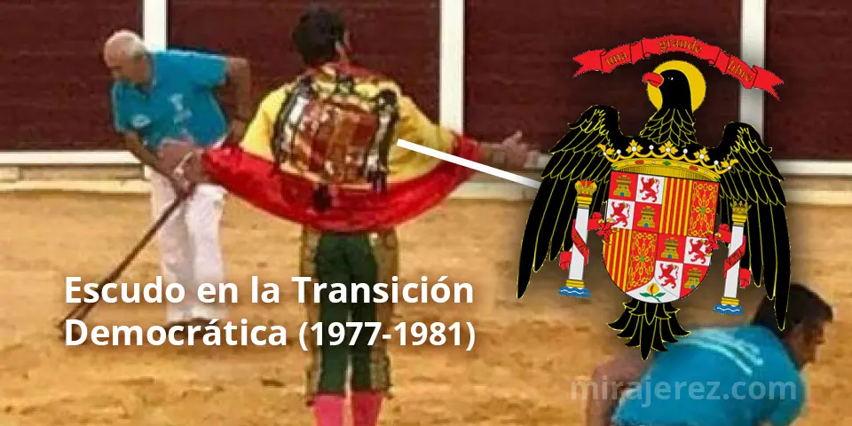 La bandera que lanzaron este sábado desde el graderío al ruedo de la plaza de toros de Villacarrillo, y que el torero jerezano Juan José Padilla se colocó en los hombros, no contiene el escudo franquista, sino el de la transición durante los primeros años de reinado de Juan Carlos I.