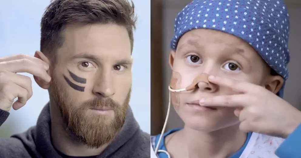 En este, aparecen varias personas crean una torre que simboliza el `Pediatric Center de Barcelona´ en el que un pequeño se coloca en la cúspide para realizar un gesto con los dedos índice y medio sobre su mejilla, con el que el astro argentino ha celebrado varios de sus goles. Un símbolo, parecido al que llevaban los indios en las mejillas, que representa la lucha contra el cáncer infantil.