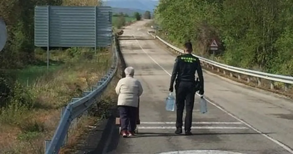 La Guardia Civil de Álava ayudó a una mujer mayor a llevar la compra hasta su casa después de encontrarla en Araico, en el enclave burgalés del Condado de Treviño, a cierta distancia de su domicilio.
