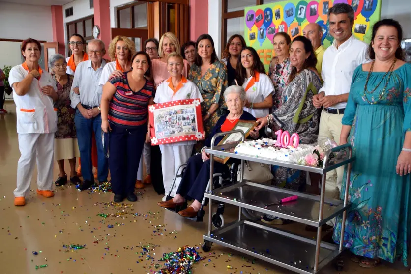 En la fiesta de su cien cumpleaños no han faltado los regalos y la tarta, y la cumpleañera ha estado acompañada de sus familiares, compañeros y compañeras, así como del personal del centro y los voluntarios y voluntarias que colaboran con la residencia.