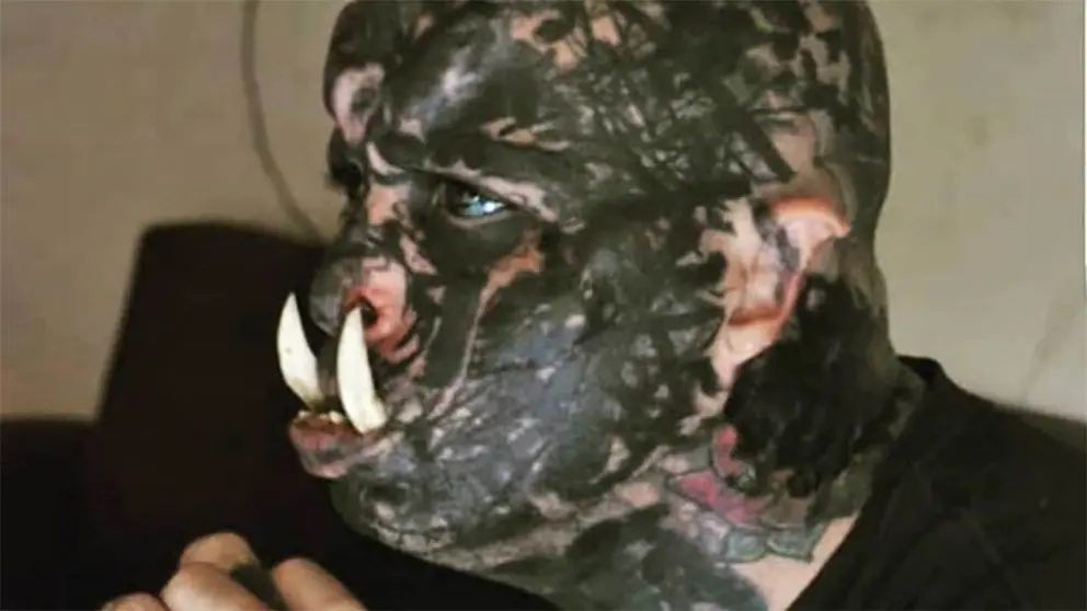 Ser un orco es posible. El tatuador brasileño de 41 años que se hace llamar 'orcinfernall' ha logrado ser noticia mundial tras completar su proceso de transformación de humano a orco. Orc, reside en Iguatemi, en Mato Grosso do Sul y ya tenía el 80% de su piel tatuada. No contento con eso, hace poco presentó en Instagram su última modificación: dos colmillos de gran tamaño. Este implante no le ha salido muy caro, pues le ha costado 525 dólares.