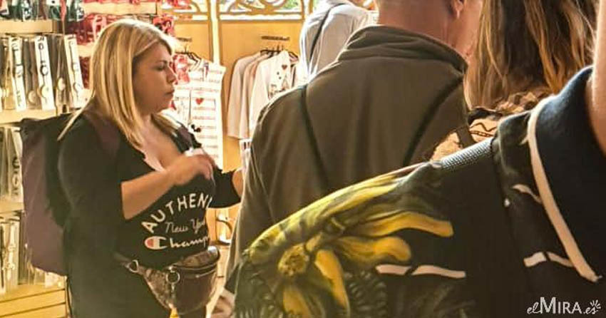 Las imágenes han sido tomadas en pleno parque en París en la tarde del miércoles, mientras Mamen Sánchez paseaba felizmente por las instalaciones y entraba en las tiendas Disney de compras, observando artículos de sus personajes favoritos, en una amena jornada, lejos de los problemas que vive la ciudad a diario.