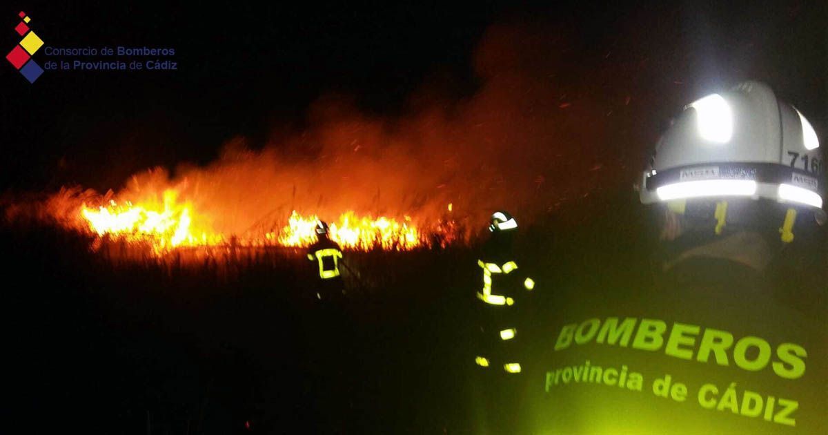 Bomberos de los Parques de Puerto Real y Cádiz han intervenido en un incendio de monte bajo de grandes proporciones.