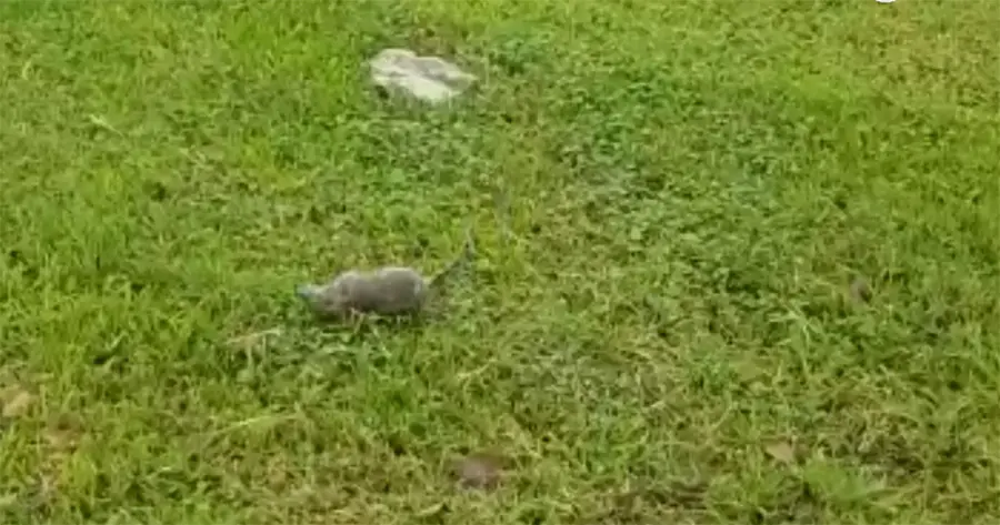 Un joven que se dirigía a su trabajo en coche, tras ver al ejemplar paseando a sus anchas por la zona, un parque donde suelen acudir muchos niños a jugar y adultos a pasear, decidió bajarse del automóvil y grabar la escena, mientras intentaba matar al roedor. Lanzó una piedra de gran tamaño y dio en el blanco, la mató de un solo impacto.
