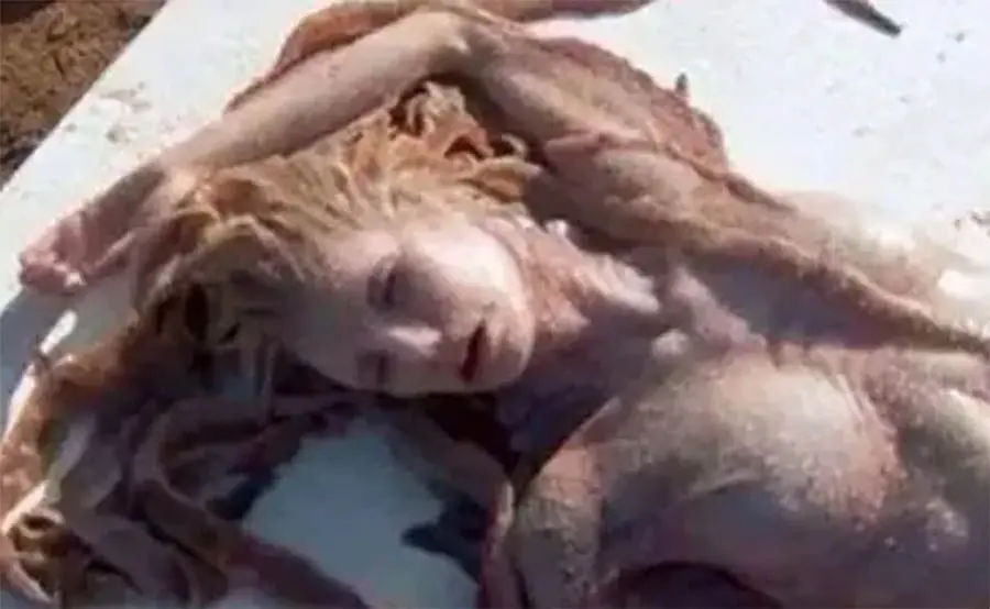 A close-up of the mermaid when she was still alive