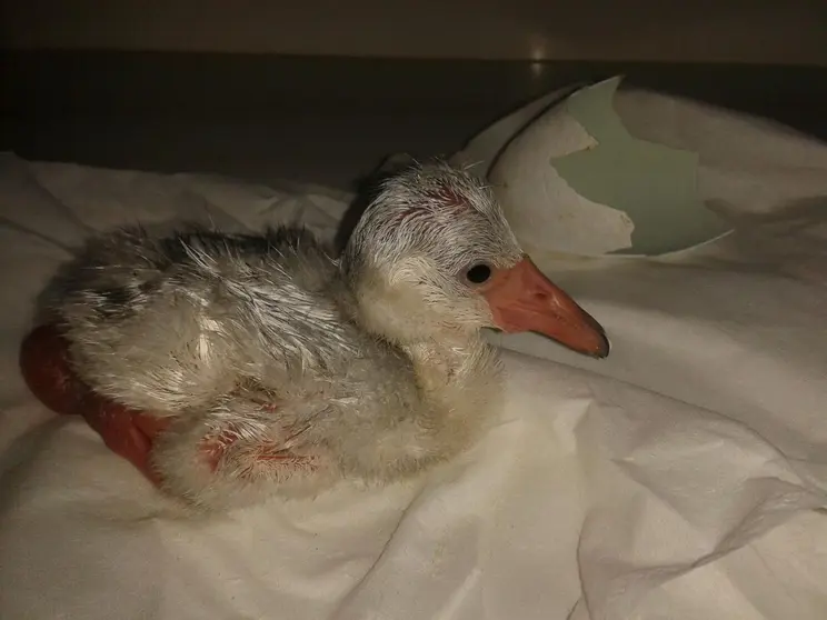Esta última parte se ha podido grabar y colgar en la página del Facebook del Zoobotánico. Nada más salir del huevo se les ha llevado con sus padres y, no más tarde de una hora, comienzan a alimentarlo y cuidarlo.