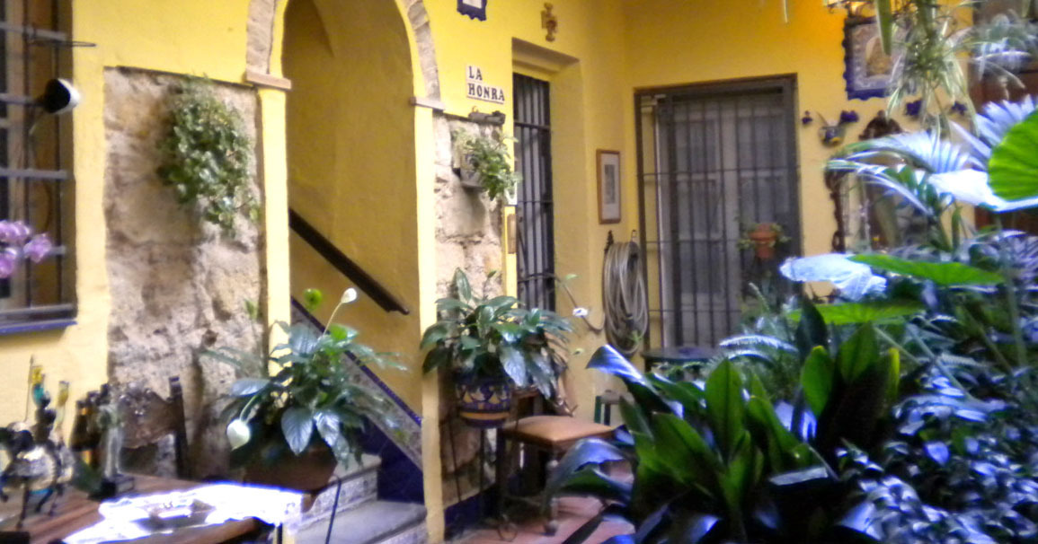 Así “patios monumentales de Casas-Palacios de Cargadores a Indias, patios claustro o de conventos, patios de bodegas o bodegueros, y los patios populares o de vecindad, lo que nos obliga a hacer una serie de distingos”.