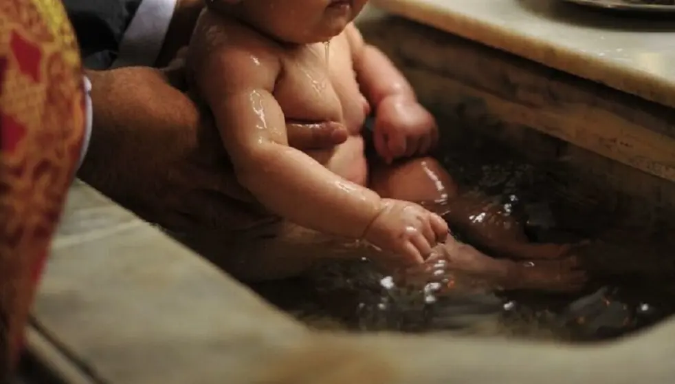 Este tipo de ritual consiste en sumergir al niño de manera brusca tres veces en el agua bendita, en nombre del Padre, el Hijo y el Espíritu Santo. En los últimos tiempo, la Iglesia Ortodoxa se está enfrentando a la polémica por estos rituales de bautismo en Rumania.