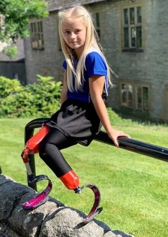 ¿Qué podemos decir de la pequeña? Pues que nació con hemimelia fibular, una deficiencia congénita de las extremidades que se caracteriza por la ausencia parcial o completa del peroné. Esta enfermedad hizo que los médicos tomaran la decisión de amputar una parte de sus piernas cuando tenía 18 meses y desde entonces lleva prótesis con total normalidad.