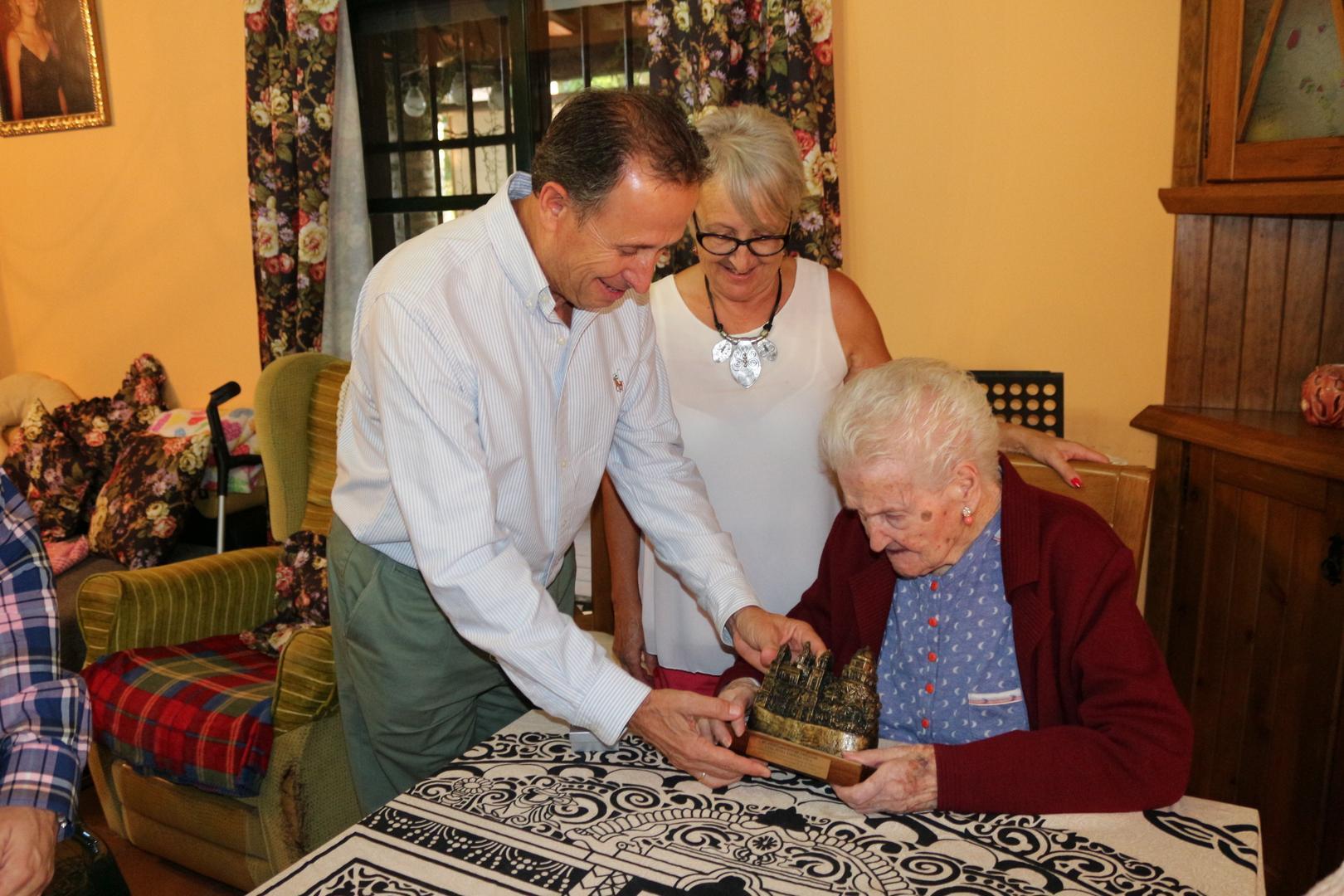 El alcalde de Chiclana, José María Román, y el delegado municipal de Servicios Sociales, Francisco José Salado, han visitado a Petra Barbosa Vela, actualmente vecina más longeva de Chiclana y de Andalucía con 109 años. Así, durante la visita, el alcalde ha hecho entrega a Petra Barbosa de una metopa, en el que se aparecen los edificios más representativos de la ciudad, entre ellos, la ermita de Santa Ana, el arquillo del reloj, la Iglesia Mayor o la iglesia de Jesús Nazareno, entre otros. Asimismo, le ha impuesto la medalla de Chiclana.