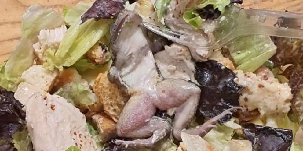 Hay que tener ojo avizor hasta con aquello que comemos. No podemos perder detalle. Una mujer se ha llevado una vomitiva sorpresa después de pedir una ensalada en una famosa cadena de restaurantes y encontrar una rana muerta dentro. Así tal como se lee. No cualquier cosa: una rana en su entera dimensión.