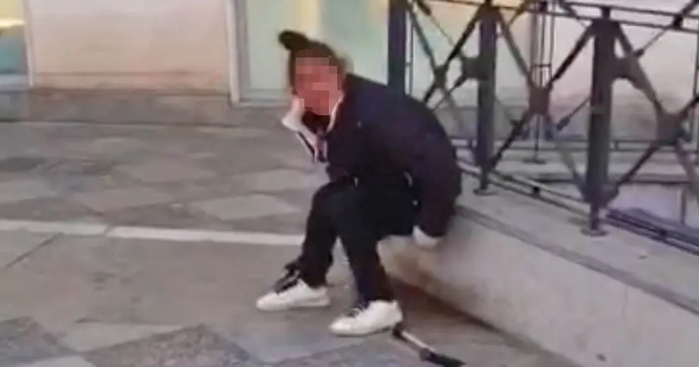 El viandante que graba las imágenes le recrimina la acción, a lo que la mujer contesta amenazando con lanzar una de las muletas hacia él. La sanción económica por orinar en la vía pública puede ir desde los 75 a los 500 euros.