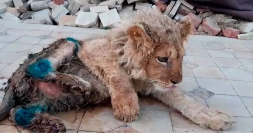 Rescatan a Simba, el cachorro de león al que partieron las patas