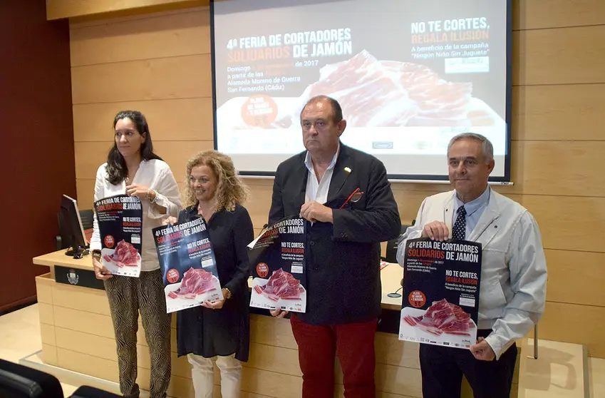 La concejala de Fiestas del Ayuntamiento de San Fernando, Mar Suárez, ha sido la encargada de presentar en el Centro de Congresos la 4ª Feria de Cortadores Solidarios de Jamón como preludio a las actividades que se realizarán en la ciudad durante las fiestas navideñas y a beneficio, una vez más, de la campaña ‘Ningún niño sin juguete’, impulsada por la Asociación Reyes Magos.