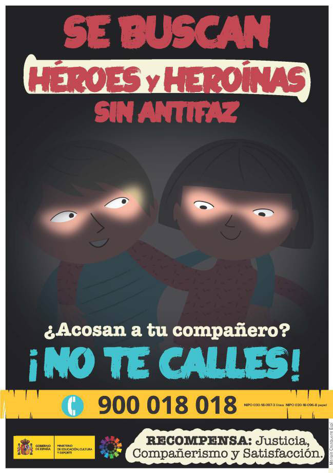 Lo que está claro es que el acoso escolar es algo que se debe acabar y es cosa de todos. La campaña "Se buscan héroes y heroínas sin antifaz" apoya a los alumnos a no callarse si acosan a sus compañeros, en busca de una recompensa basada en la justicia, compañerismo y satisfacción.