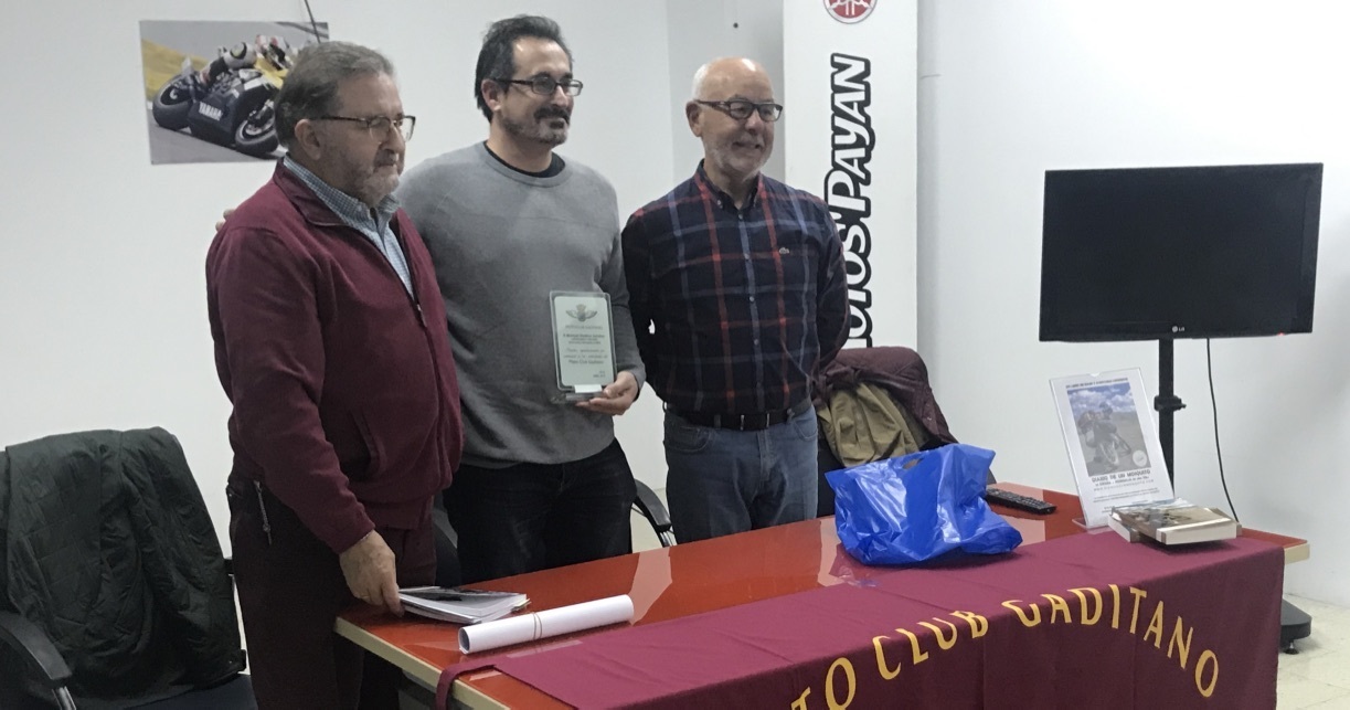 Una vez finalizada la presentación el Moto Club Gaditano agradeció a Manuel Medina su asistencia y le hizo entrega de un obsequio de manos del presidente de la entidad, Juan López Trujillo.