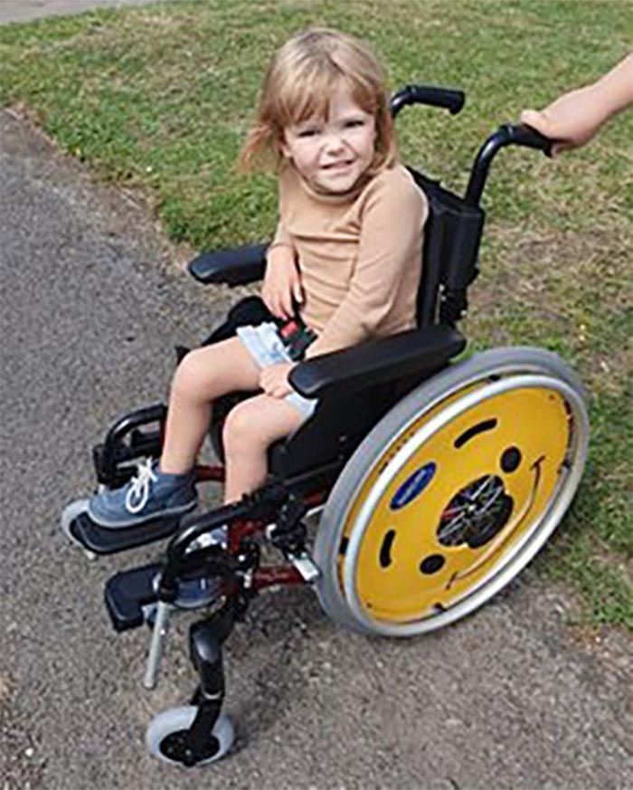 Hay que destacar que la pequeña tiene la enfermedad de Perthes, una rara afección infantil que afecta la cadera, haciendo que le duela caminar.