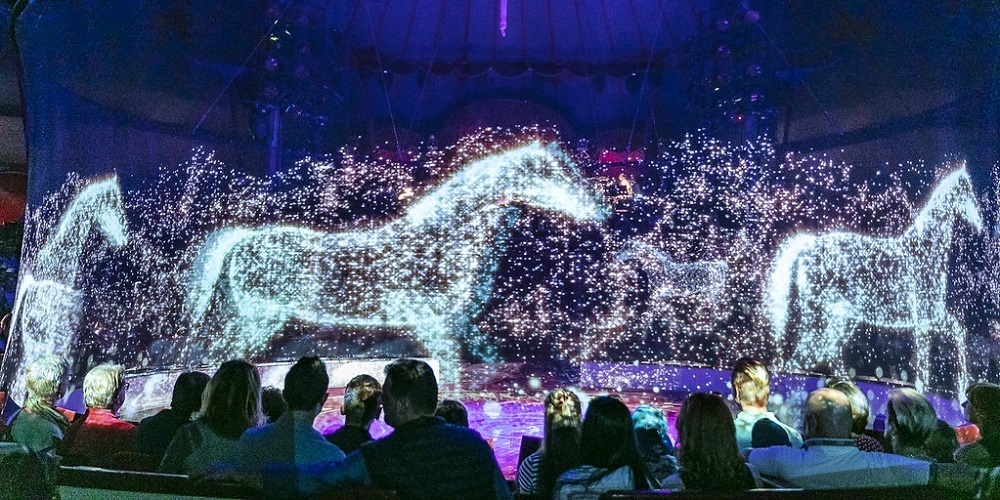 Los hologramas simulan a los animales y los asistentes pueden observar espectáculos con caballos o elefantes sin que ningún animal sufra de ningún modo. El circo cuenta con 11 proyectores láser que recrean de manera virtual a los animales.