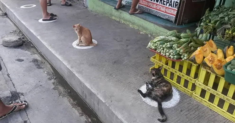 Sin embargo, un grupo de gatos callejeros se ha hecho viral por seguir las normas de distanciamiento social en un mercado de la ciudad filipina de Quezon.