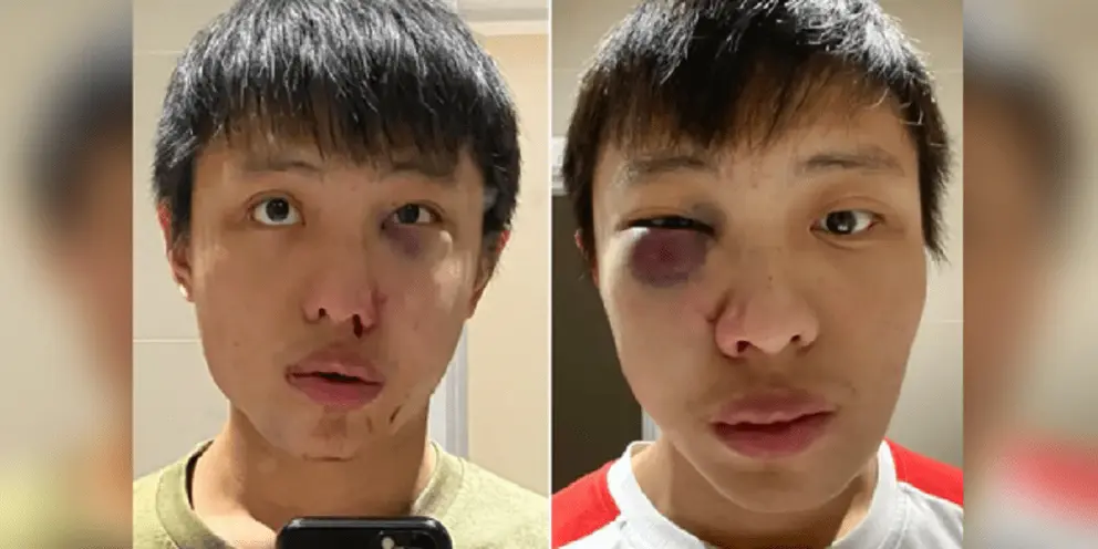 “Los racistas constantemente encuentran excusas para exponer su odio y, en este contexto actual del coronavirus, han encontrado una excusa más”, escribió el estudiante, acompañando el texto de dos imágenes de como había quedado su rostro.