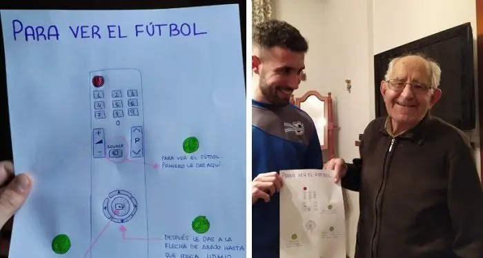Dibuja un mando con instrucciones para que su abuelo pueda ver el fútbol