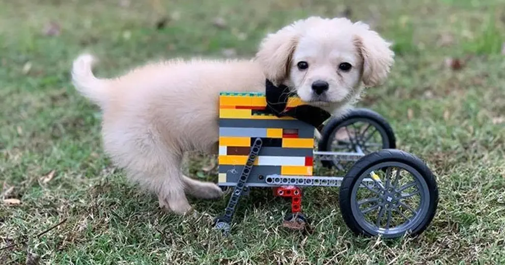 Un niño fabrica una silla de ruedas con piezas de lego para su perra discapacitada