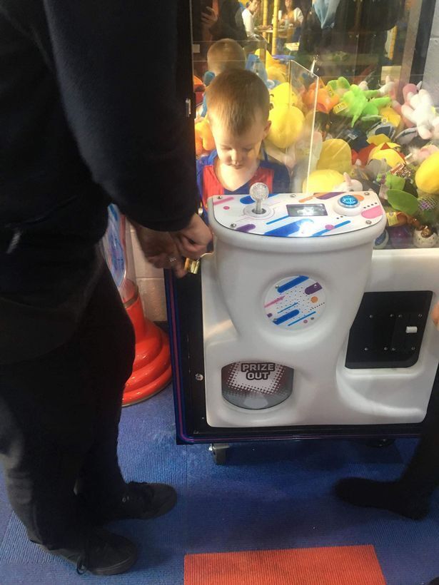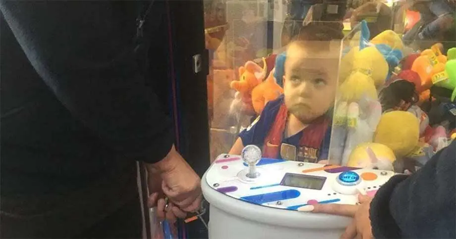 Un niño de tres años ha quedado atrapado en una máquina grúa de regalos después de haber intentado llevarse desesperadamente un peluche a casa.