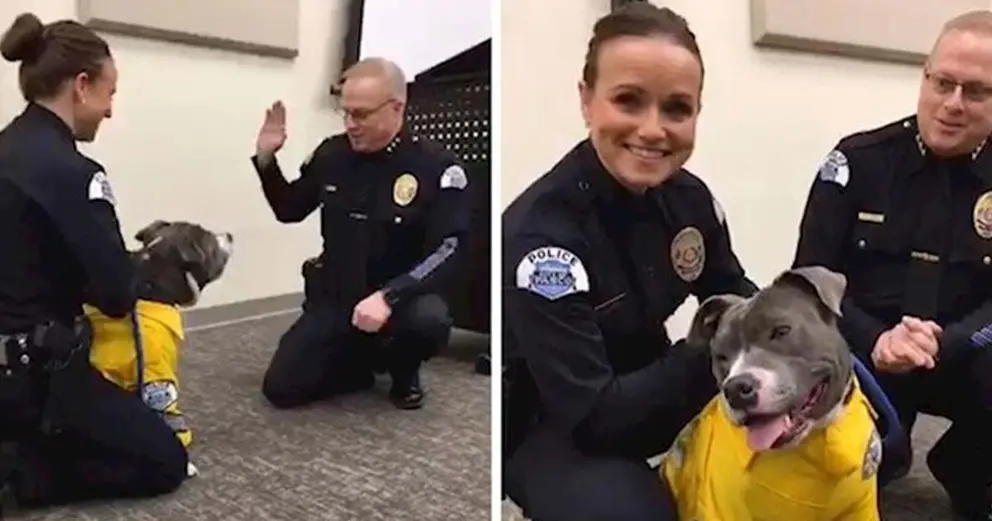 Eddie, un pitbull diagnosticado con un cáncer inoperable, ha ingresado en el Departamento de Policía de Pasco, en Washington, como oficial de Policía honorario k-9.