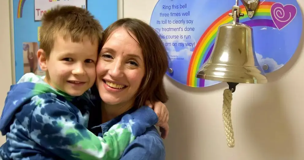 Una madre y su hijo, de 8 años, celebran juntos que acaban de superar un cáncer