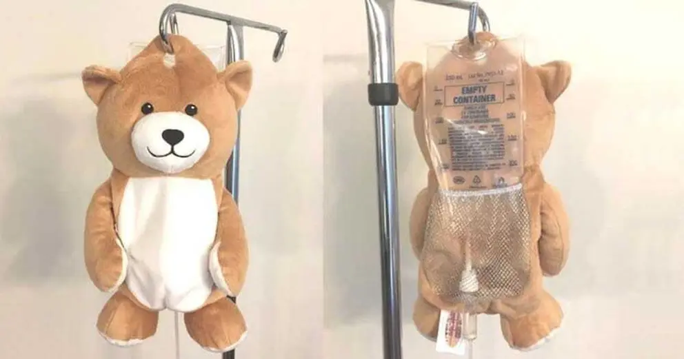 Tras varios días dándole vueltas a la idea de hacer los goteros más agradables a la vista surgió el prototipo `Medi Teddy´ el osito que esconde las bolsas de suero sin obstaculizar el trabajo de las enfermeras.
