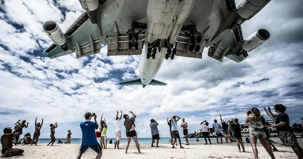 El aeropuerto Princesa Juliana contiene una espectacular vista del Caribe, los aviones que despegan o aterrizan pasan a sólo 25 metros del suelo. Ubicado en la isla Saint Marteen, este aeropuerto pertenece a los Países Bajos.