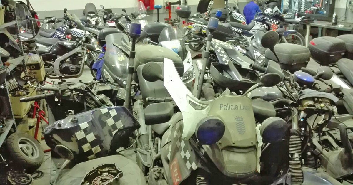 La escasez de vehículos patrulla ha sido un detonante constante denunciado durante años por el Sindicato Independiente de la Policía Local, quien ha manifestado continuamente que gran parte del parque de motocicletas con la que han contado se encuentran por reparar en los talleres municipales, como se puede ver en estas imágenes de 2018.