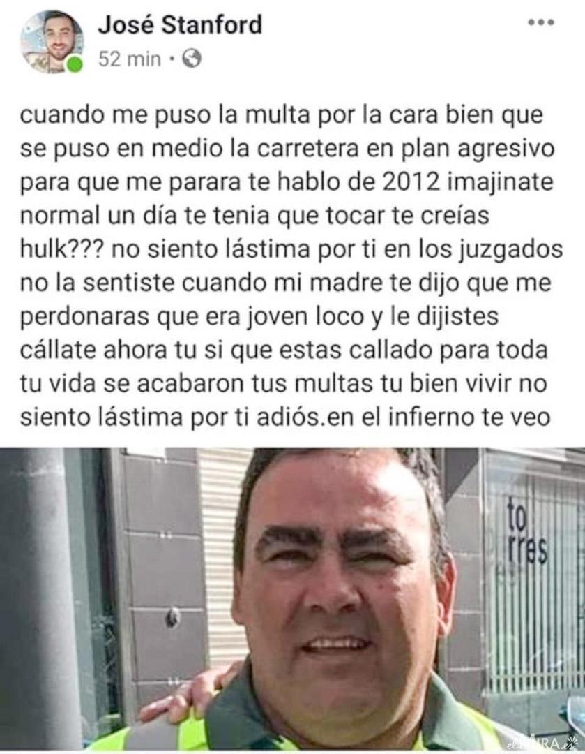Un joven ha publicado un post en la red social de Facebook que no ha tardado en hacerse viral y en ser reprochado por miles de personas, en el que se jacta de la muerte del jerezano y residente en Algeciras, Fermín Cabezas, Guardia Civil de la unidad de Tráfico que ha fallecido tras sufrir un accidente mientras perseguía a un turismo cargado con 200 kilos de droga.