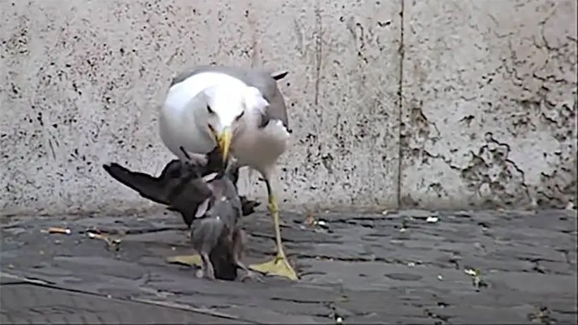 Gaviota devora en Cádiz a una paloma