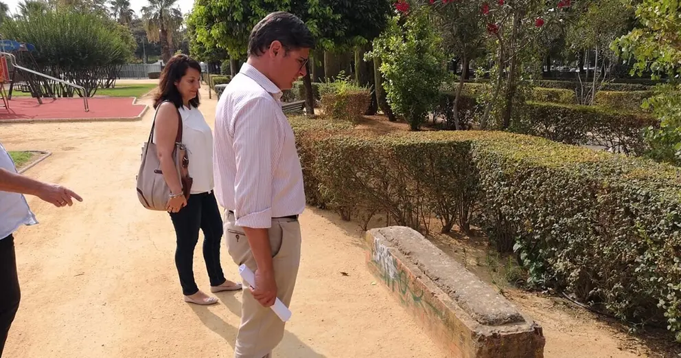 Se ha trasladado la mañana del 27 de agosto a la zona para su presentación, así como ha aprovechado el tirón para criticar las escasas acciones de cuidados que lleva el gobierno municipal con estas áreas "Este es un lugar de paso para turistas y sevillanos, que no se merecen encontrarse con parques en este estado", apunta Pimentel.