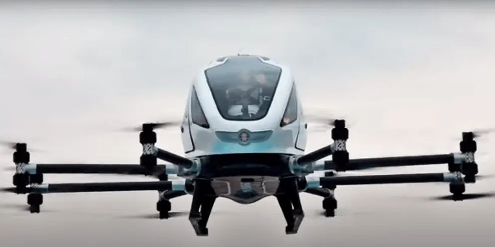 Se trata del EHang AVV, fabricado por la empresa china EHang Technology. Han conseguido crear una especie de dron llamado a revolucionar el mundo del transporte.