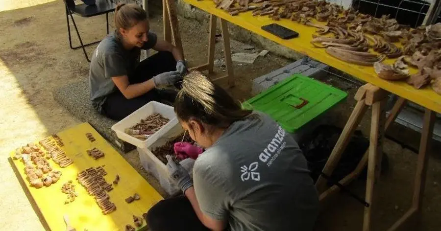 A una profundidad de aproximadamente 1,3 metros bajo rasante, los operarios y especialistas encargados de la excavación "han encontrado un grupo de inhumaciones de cinco personas, caracterizadas por estar en contacto anatómico y no responder a la forma establecida de enterramiento". Según se precisa en este correo, "cuatro están dispuestos boca abajo y uno boca arriba con orientaciones inversas".