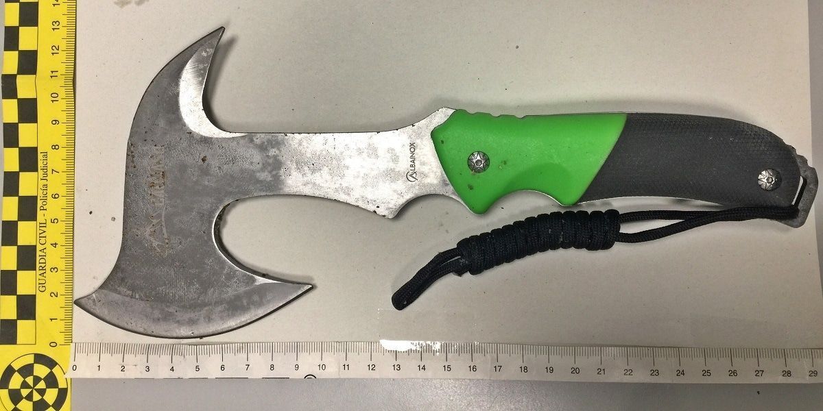 Deciden entrar parapetados detrás de dos camillas, las que portaban el equipo de bomberos y el equipo médico presentes en el lugar, y finalmente, a pesar de que esta persona arrojó contra ellos un hacha y dos machetes, los guardias civiles logran reducirlo, contando con la ayuda de los bomberos.