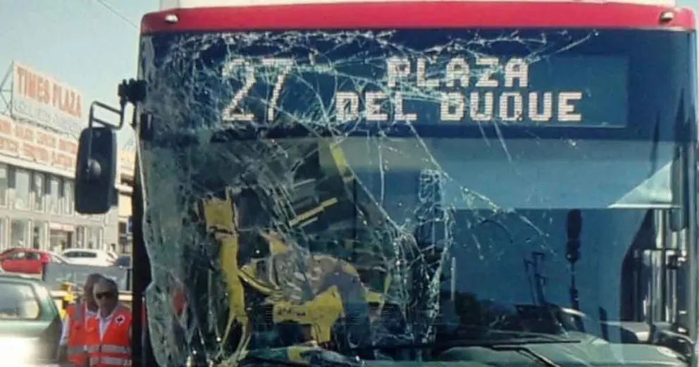 Poco antes de las 13.00 horas de este viernes, los servicios de emergencias de Sevilla eran alertadas en relación con un siniestro vial en el que un autobús de transporte urbano que circulaba por la Av. de Montesierra chocó contra la parte trasera de una grúa que estaba estacionado en batería en un lugar en el que se debe estacionar en línea.