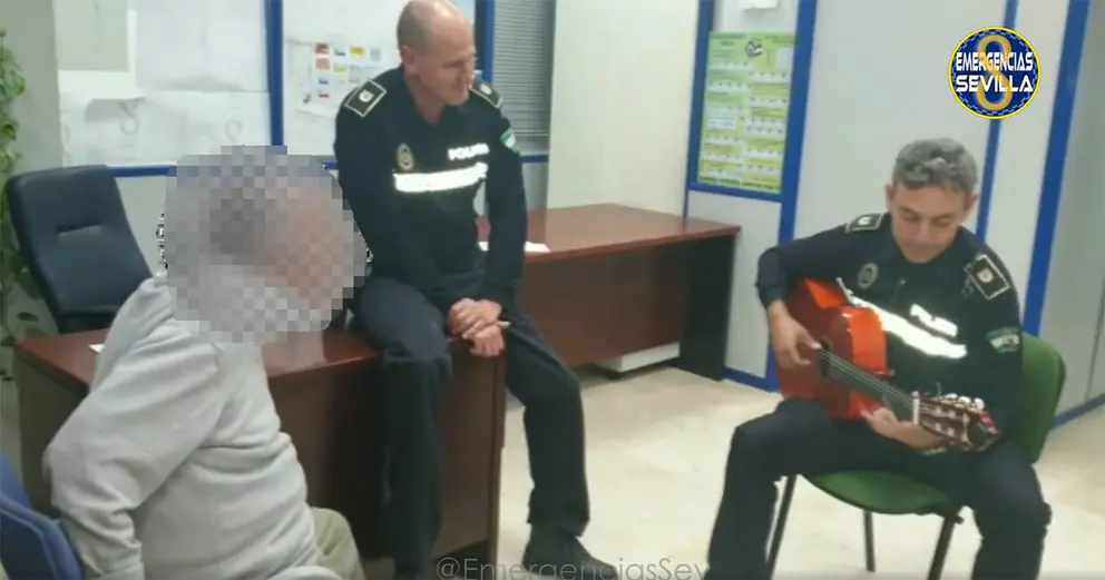 Agentes de la Policía Local no dudan en buscar una guitarra y tocan hasta que llega un familiar a recogerlo