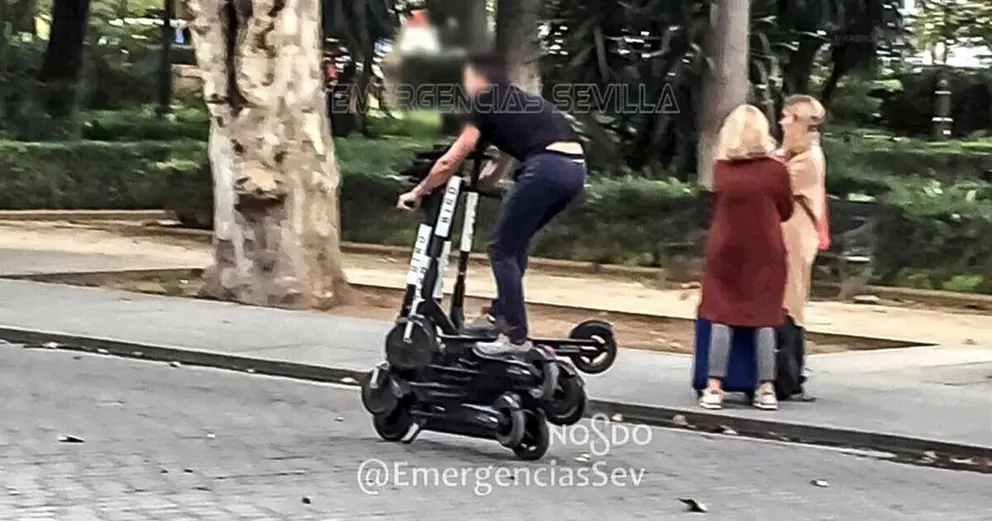 Pillado circulando sobre seis patinetes eléctricos a la vez