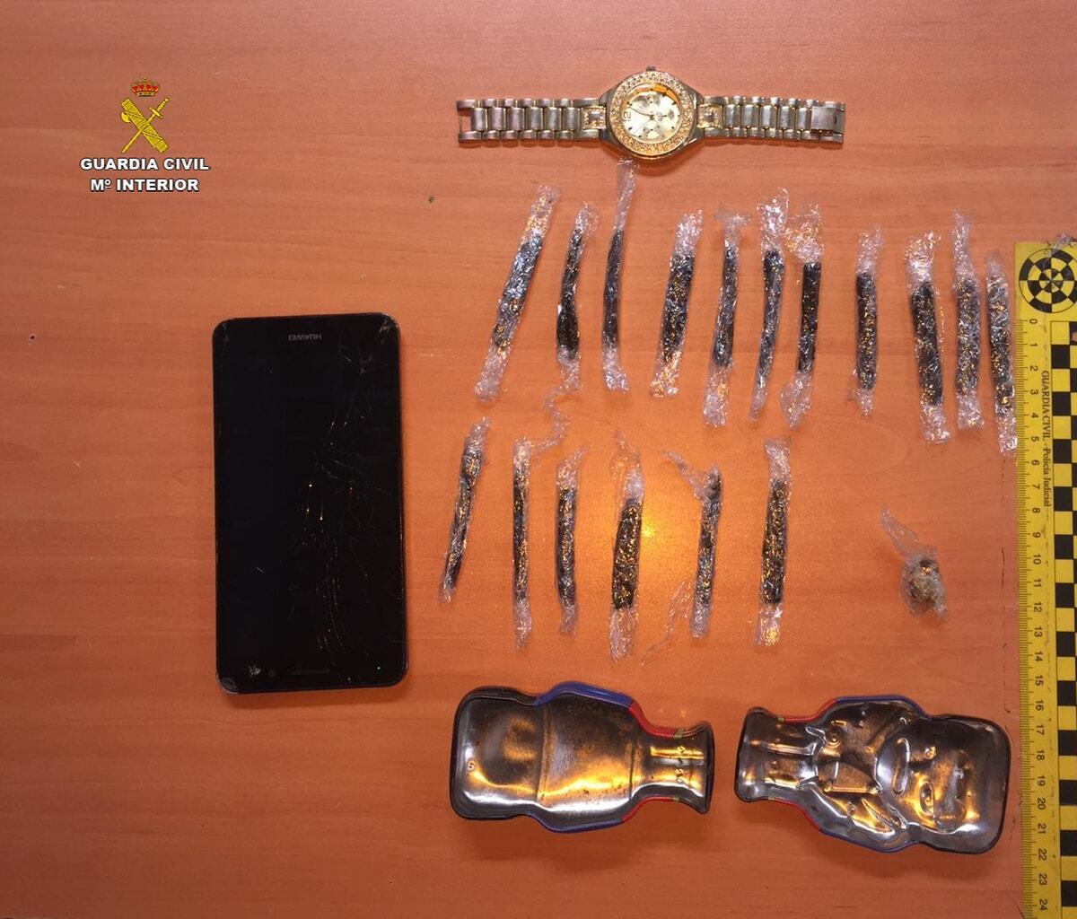 Los agentes, encontrándose ante la actitud sospechosa de algunos individuos, procedieron a identificar a varios grupos de jóvenes situados en un parque infantil tras las casetas juveniles. Uno de los individuos intentó deshacerse de un recipiente metálico, en cuyo interior localizaron 17 dosis de lo que parece ser Hachís.